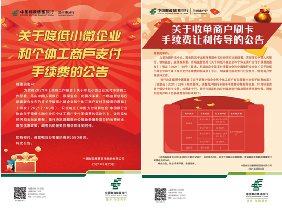 邮储银行甘肃省分行认真贯彻落实党中央、国务院关于减费让利各项决策部署,积极响应中国支付清算协会、银行业协会减费让利倡议,利用多种形式开展减费让利政策宣传。