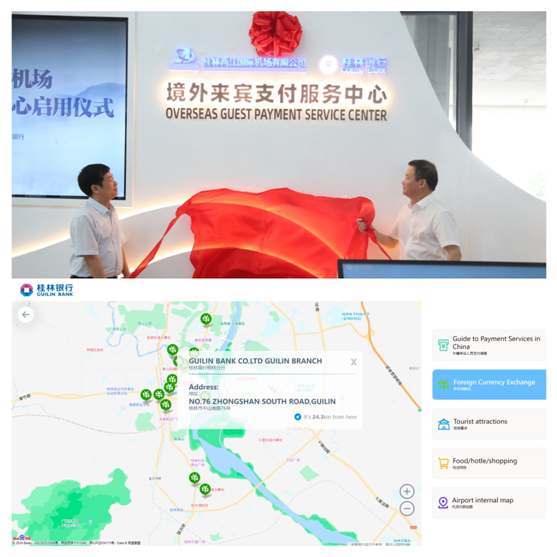 桂林银行深入贯彻党中央、国务院决策部署,深入践行“支付为民”理念,以“金融成就美好生活”为使命,专注做好“桂林的银行、服务乡村振兴的银行”,切实将“金融向善、金融为民”的服务理念全方位嵌入到各类金融服务场景中,致力提升金融服务的便利性、可得性,用心用情服务地方、服务人民。通过“一中心,三优化”等措施,宣传外籍来华人员支付便利化工作成果,树立典型、促进交流、营造氛围、提升质效,持续提升支付服务工作水平,使客户支付便利度更高、幸福感更强。为进一步提升支付服务便利性和优化境外来宾支付体验,桂林银行联合人民银行桂林市分行、桂林两江国际机场共同建设跨境旅游支付便利化服务示范区,于5月23日正式揭牌启用,成为广西首个机场支付服务中心,也是全国首个借助自助电子地图导航实现自助化支付服务指引的机场服务中心。该中心为境外来桂人士提供集旅游宣传、消费引导、支付体验于一体、“人工+自助”相结合的“一站式”便利服务,如为境外来桂游客提供的来华支付指引、移动支付绑定、外币兑换咨询等支付便利和桂林世界级旅游城市“食、住、购、娱”四大重点旅游场景的信息查阅、服务指引,成为广西提升支付服务便利性、优化境外来宾支付体验取得的新突破,为全区支付服务环境提升提供样板。