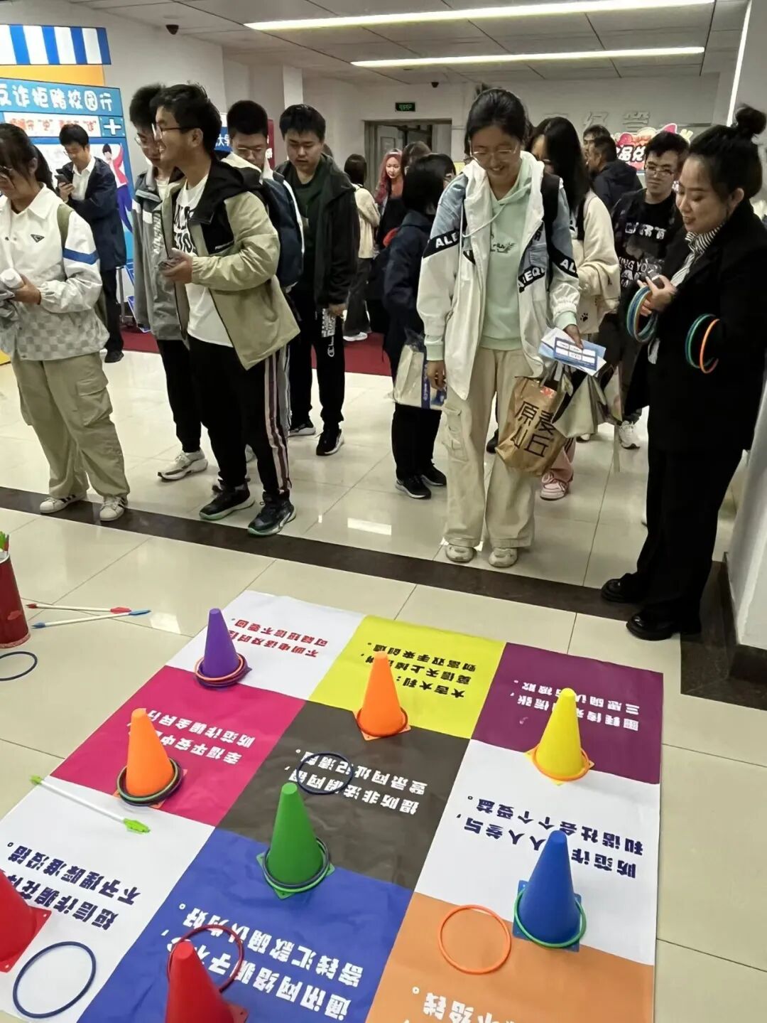 活动伊始便以一系列创意十足的互动环节,如反诈签名墙、答题投壶和反诈套圈等,迅速吸引了广大师生的热情参与,同时为积极参与游戏的师生颁发了精美的奖品。在轻松愉悦的氛围中,参与者们不仅收获了乐趣,更在潜移默化中学习了反诈骗知识,提升了自身的安全防范能力。
