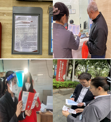 让利于民”宣传活动。为确保减费让利政策能够落到实处,分行组织员工开展减费让利专题培训,全面解读监管政策,详细介绍了全行拟实施的优惠项目、优惠价格、优惠对象、优惠时间等具体内容,传达监管的工作要求及关注重点,使员工熟悉并掌握最新优惠政策和收费标准,提高专业知识素养,强化金融服务能力,真正做到“降费不降服务”。一是通过线上线下相结合的方式开展宣传。一方面以营业网点为宣传阵地,积极开展厅堂宣传,充分利用营业网点主阵地作用,在厅堂醒目位置摆放减费让利宣传折页,向前来厅堂办理业务的客户派发宣传折页,通过LED屏滚动播放宣传标语,主动引导厅堂客户了解减费让利、服务实体经济的优惠政策,介绍各项优惠措施,提高客户对优惠政策的理解。另一方面积极利用短信通知渠道宣传,扩大宣传面,提高社会关注度。二是受理小微企业和个体工商户支付业务时,主动告知客户能享受的优惠政策。积极引导客户选择适合自己业务需求和经济承受能力的支付结算方式。三是组织开展减费让利政策“进园区、进企业、进商户”活动。3月进阳山人民医院、清远市清新区禾云镇广州花都(清新)产业转移工业园区,利用帮客户上门开立对公账户及为客户办理开立工资卡业务的契机对小微企业和个体工商户负责人、财务人员等受众群体进行精准宣传,提高政策宣传的触达率和精准度,对小微企业和个体工商户关注的问题,工作人员面对面答疑解惑,让小微企业和个体工商户对减费让利政策有更深的认识。分行充分利用“3.15消费者权益保护日”活动资源进一步丰富宣传素材和方式,将支付手续费降费宣传与分行组织的消费者权益现场宣传活动有机结合,3月15日在清远市中山公园开展“支付降费 让利于民”宣传活动。通过此次减费让利宣传活动,广发银行清远分行深入推动减费让利政策“入脑入心”,提升了小微企业和个体工商户对减费政策的知悉度、满意度,营造了金融机构重视、关心、支持小微企业和个体工商的良好舆论氛围,分行将继续秉持“以客户为中心”的服务理念,不断提升金融服务质效,真正让减费让利的政策惠及更多客户,助力实体经济发展。