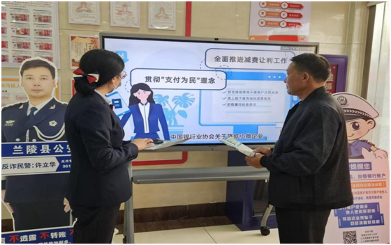 为深入落实响应国家政策,持续支持实体经济发展,兰陵农商银行积极响应政策号召,厅堂内外共发力,线上线下齐宣传,降费为民,让利于企,让辖区中小微企业及个体工商户在节省成本的前提下享受更高效便捷的金融服务。厅堂内下真功夫,宣传到位服务优。为让客户能够更详细便捷的了解到我行的降费让利政策,兰陵农商银行在每个服务窗口均放置降费让利展板;在厅堂多媒体宣传设备上循环播放近期实行的各项降费让利政策;工作人员还利用厅堂微沙龙时间向客户讲解不同客户群体可以享受到的各项优惠政策,让客户真正体会到“降费为民让利于企”的价值所在。